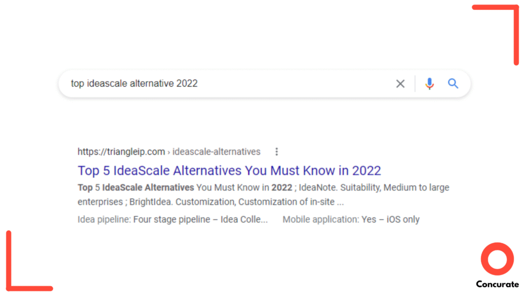 Our content piece titled “Top 5 IdeaScale Alternatives You Must Know in 2022” successfully ranks our client at the top of Google search results.