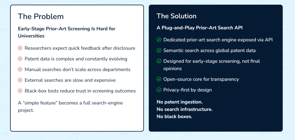 We started by building use-case landing pages targeting each buyer segment. Instead of one generic API page, we created dedicated pages for researchers, university labs, law firms, and patent attorneys.
