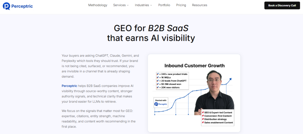 Perceptric is a newer, GEO-focused agency that centers its work around AI search and generative discovery.