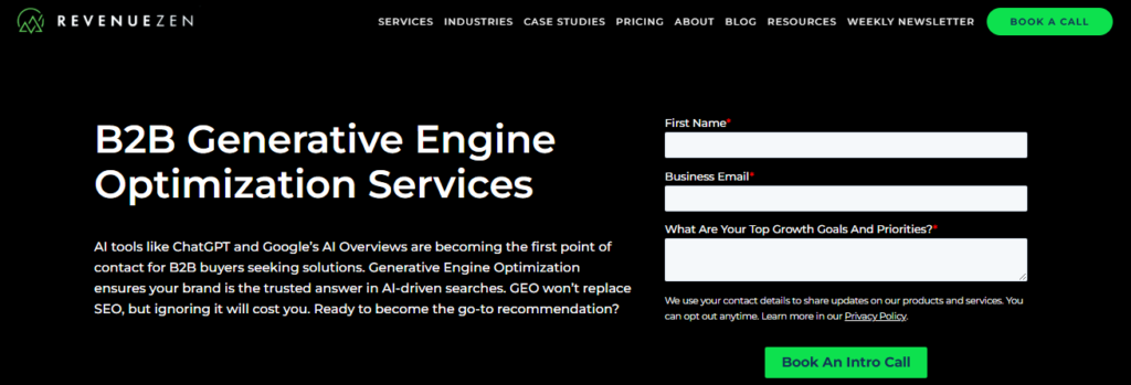 RevenueZen is a B2B SEO and content agency that focuses on structured, intent-driven growth. Their take on GEO is a little different from most. They start with a question many agencies skip: how clearly is this brand actually being described across AI platforms?