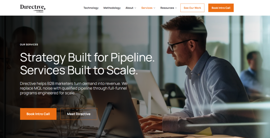 Directive Consulting is a B2B marketing agency offering full-funnel services across paid media, content marketing, CRO and performance design, revenue operations, and go-to-market strategy. Their work is structured around what they call Customer Generation, a methodology that connects strategy, execution, and measurement across demand creation and conversion.