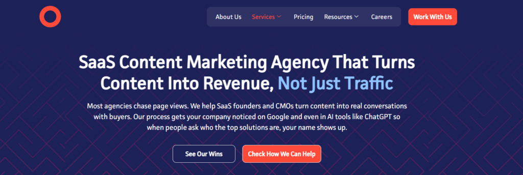 The agency presents itself as operating beyond top-of-funnel activity, with services spanning SEO-driven content, high-intent paid media, conversion optimization, marketing automation, and revenue operations.