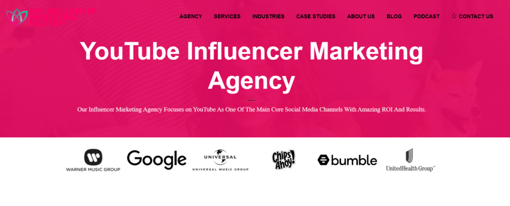 For YouTube, the agency focuses on creator matchmaking, video concept development, and measurable ROI reporting.