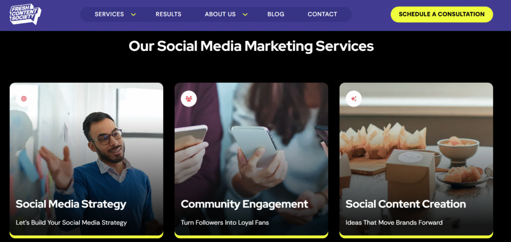 Fresh Content Society is a Chicago-based social media marketing agency that helps brands strengthen their presence across platforms like YouTube, TikTok, Instagram, and LinkedIn.
